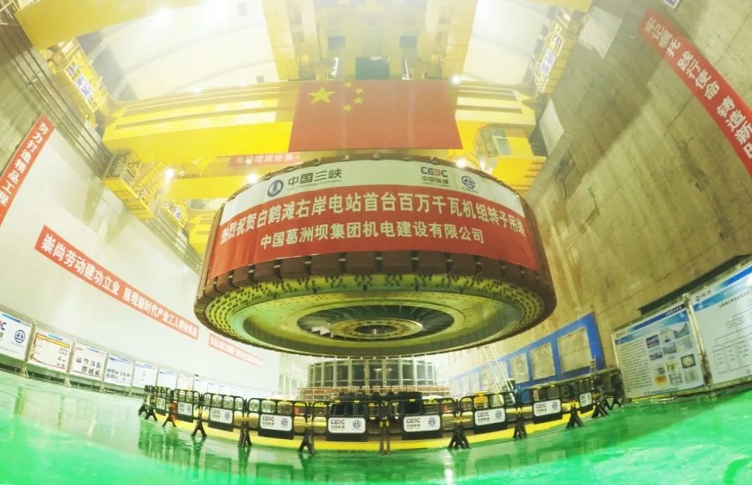 白鶴灘右岸電站首臺(tái)百萬千瓦機(jī)組轉(zhuǎn)子吊裝