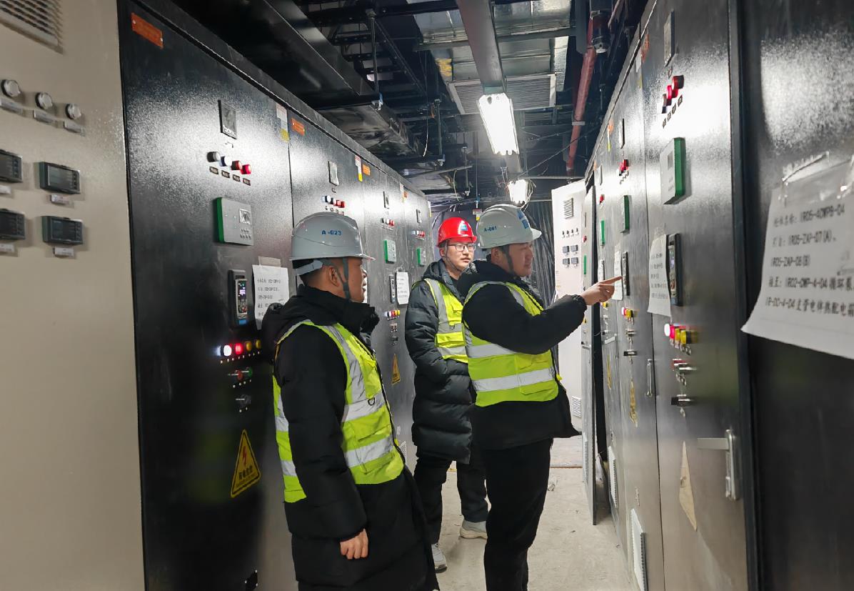 “必須保證所有變電所分閘,防止重新送電時電流直接沖擊設(shè)備”“屋面泵房再去兩個人,重新起泵并保證壓力正常”“拿好對講機,一間屋一間屋地送電”……現(xiàn)場總指揮、項目生產(chǎn)經(jīng)理閆鵬的聲音堅定有力,全體值班人員嚴陣以待,緊張有序地執(zhí)行著操作指令。送電后,屋面泵房傳來水泵“轟隆隆”的機器運轉(zhuǎn)聲。調(diào)試成功有效驗證了柴發(fā)機組自身穩(wěn)定性和機組系統(tǒng)負荷控制能力,值班人員激動地歡呼。