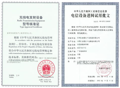 根據(jù)國家規(guī)定,所有在中國境內生產的無線電發(fā)射設備,均須持有經國家無線電管理委員會對其發(fā)射特性進行型號核準后核發(fā)的無線電發(fā)射設備型號核準證,是與3C質量認證一樣的國家強制認證。同時,國家規(guī)定在中國境內銷售的無線電發(fā)射設備,還必須通過進網許可核準,才能接入5G等公用電信網以及在國內銷售。至此,電力5G增強型通信終端成為國內電力行業(yè)同時獲得型號核準證和進網許可證的5G通信終端,使其在電網規(guī)模應用取得“合法身份”。