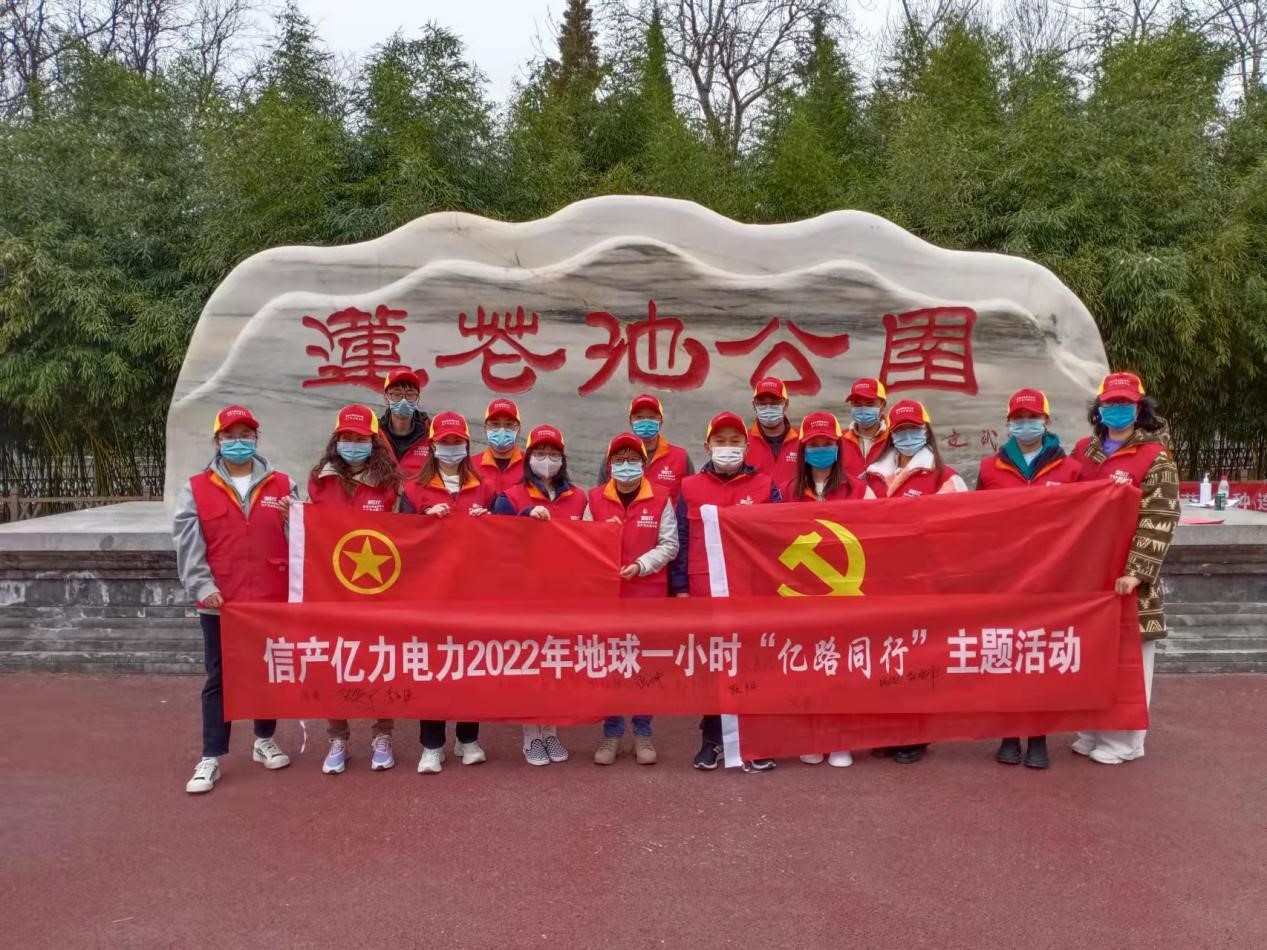為積極宣傳地球一小時公益環(huán)保理念,落實“雙碳”目標(biāo),促進(jìn)節(jié)能環(huán)保,積極支持全球應(yīng)對氣候變暖行動,不斷深化國家電網(wǎng)思極先鋒“億心e意”共產(chǎn)黨員服務(wù)隊志愿服務(wù)能力,3月25日下午,信產(chǎn)億力電力黨支部在蓮花池公園組織開展2022年地球一小時“億路同行”主題系列活動啟動式暨蓮花池公園清潔志愿服務(wù)。信產(chǎn)億力電力黨員干部、黨員發(fā)展對象、入黨積極分子、團(tuán)員和統(tǒng)一戰(zhàn)線成員等16人共同參與。