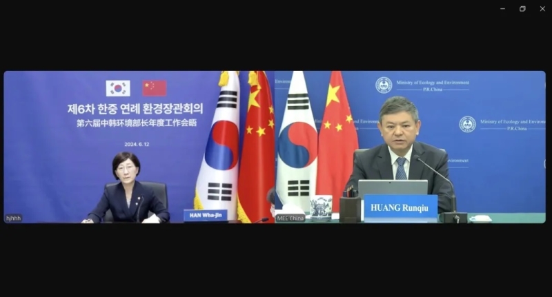 6月12日,中韓環(huán)境部長2024年度工作會晤以視頻方式舉行。生態(tài)環(huán)境部部長黃潤秋和韓國環(huán)境部部長韓和真出席會議。雙方就大氣污染防治、生物多樣性保護、塑料污染治理等議題進行深入交流。
