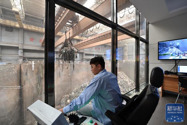 ↑ 6月4日,工作人員在垃圾吊控制室工作。