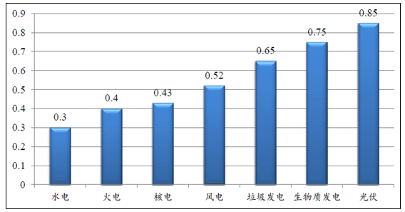 各種發(fā)電方式上網電價(元/kwh)