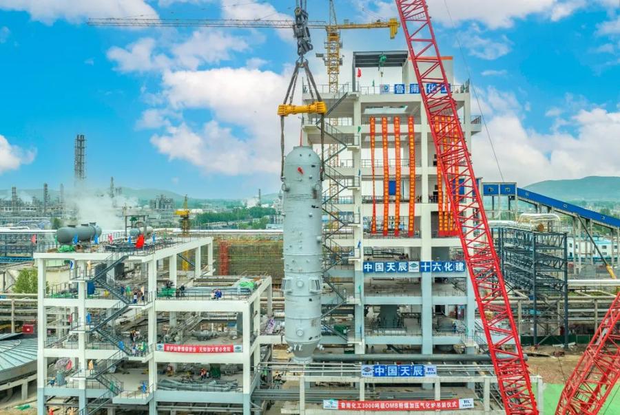▲ 多噴嘴對(duì)置式粉煤氣化爐吊裝