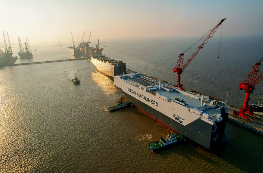 近日,招商局集團旗下招商工業(yè)海門基地建造的第一艘9100車雙燃料汽車滾裝船“禮諾極光”號,在海巡艇的引領和3艘拖輪的護航下,順利駛離船廠碼頭。該船是目前全球最大環(huán)保型汽車滾裝船,也是世界航運業(yè)綠色化、智能化發(fā)展的一個新起點。