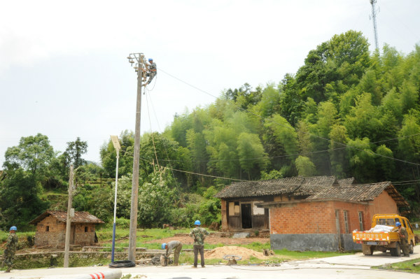 國(guó)網(wǎng)撫州廣昌縣供電公司赤水供電所工作人員劉方廣、劉方明、饒建平等人在接到楊溪鄉(xiāng)江背村用戶(hù)反映多戶(hù)無(wú)電的情況后,立即趕赴現(xiàn)場(chǎng)查找故障原因。直至5月16日凌晨3時(shí)左右,該供電所工作人員巡視完故障線路統(tǒng)計(jì)出結(jié)果:本次強(qiáng)風(fēng)共造成10千伏楊溪線江背支線88號(hào)至89號(hào)桿斷線,10千伏楊溪線江背支線江背臺(tái)區(qū)0.4千伏江背1號(hào)線18號(hào)、19號(hào)桿倒桿斷線,同時(shí),吹散表箱3只,下戶(hù)電纜3處。