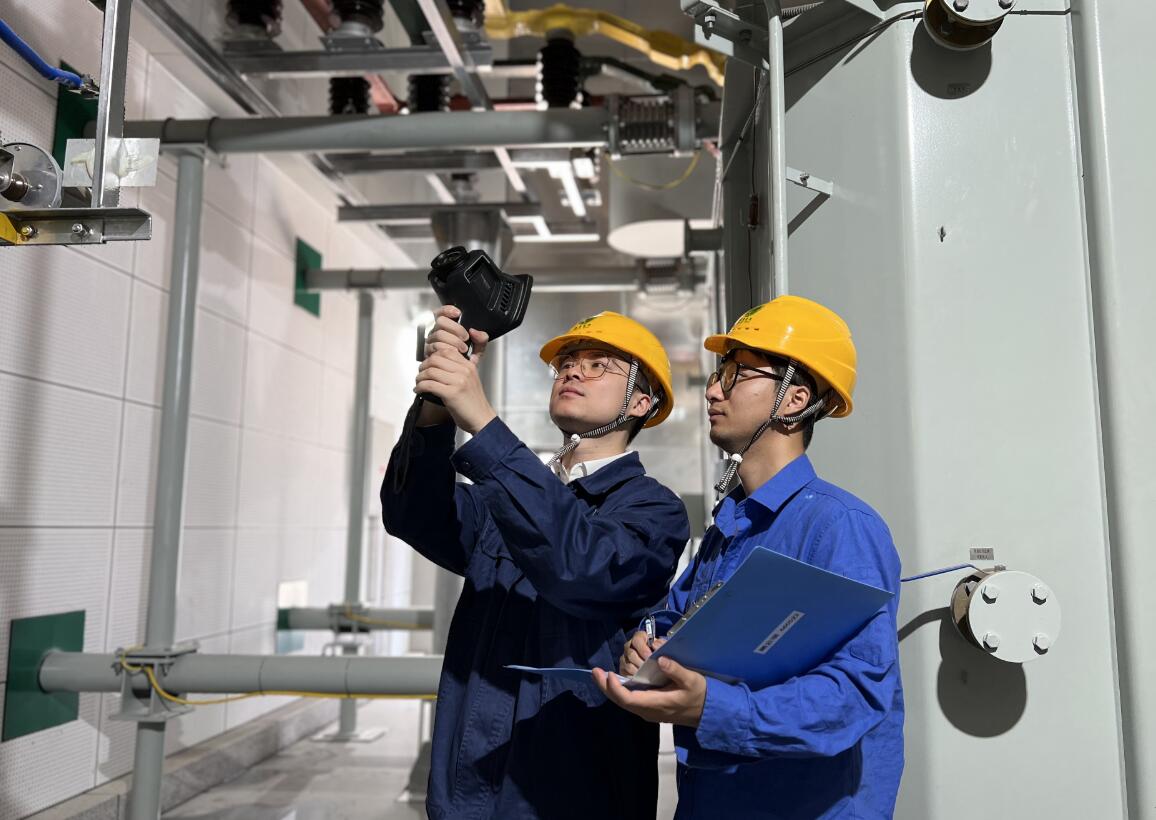 中國電力網(wǎng)訊(通訊員:史科揚)“1、2號主變運行良好,油溫油位均在正常范圍內(nèi),紅外測溫正常,全站滅火器均在保質期內(nèi)……”5月10日,余姚市宏宇輸變電工程公司巡視人員來到110千伏雙河變,仔細地對站內(nèi)設備進行測溫體檢,為電網(wǎng)心臟“把脈問診”,全力保障電網(wǎng)安全可靠運行。