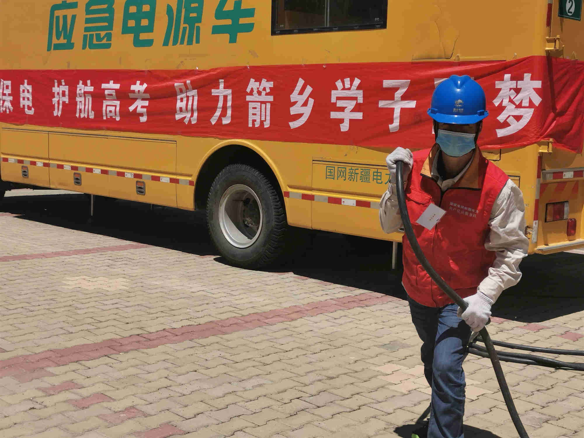 中國電力網(wǎng)訊 7月7日清晨6時,國網(wǎng)伊犁供電公司黨員服務(wù)隊員早早趕往轄區(qū)高考考點(diǎn)。到現(xiàn)場后兩人要對應(yīng)急供電車輛和線路設(shè)備做最后的檢查,確??荚嚻陂g電力供應(yīng)無憂。