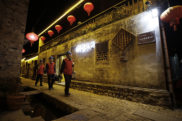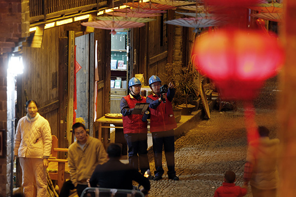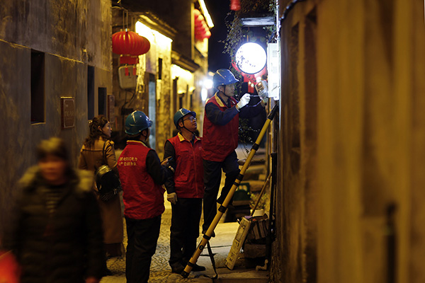 夜幕降臨,前童古鎮(zhèn)條條古巷的燈光開始亮起來,但古巷旁水渠里仍倒影著隊(duì)員們忙碌的身影。有了國網(wǎng)寧海縣供電公司工作人員不辭辛勞的保供電,留浙過年的新寧海人在前童古鎮(zhèn)這個(gè)元宵節(jié)將過得格外溫暖。
