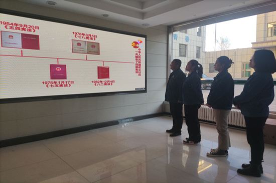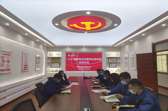 在第八個“12.4”國家憲法日來臨之際,該公司計劃于11月29日起,組織開展為期一周的2021年“12.4”國家憲法日暨憲法宣傳周活動。為營造良好的法治氛圍,該公司利用各類宣傳展架、門廳LED大屏滾動播放《憲法》等重要法律法規(guī)解讀動畫,并依托共產(chǎn)黨員服務(wù)隊成立6支“普法小分隊”,開展法律法規(guī)進企業(yè)、進機關(guān)、進班組“三進”普法活動,實行分眾普法、精準(zhǔn)普法。