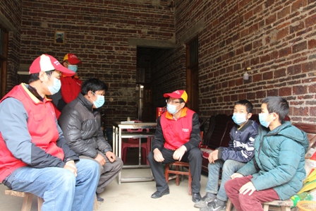 今年受新冠病毒疫情的影響,學校還未正常開學,孩子們都在家中自行學習,隊員采取逐戶上門探望的方式開展服務活動。在李志成、李志祥同學家中,兩兄弟正一起埋頭溫習功課,看到‘紅馬甲’叔叔們在這個時期里來到家里,兩兄弟高興得跳了起來,大聲的呼喊在對面山上挖筍的爸爸趕快回家。兄弟倆的媽媽離家出走十多年未回,爸爸又患上了間歇性精神病,三父子相依為命,生活來源主要依靠農(nóng)村低保補助和叔叔的資助,家境貧困令人心酸??吹絻尚值芘d高采烈地拿著叔叔們給的‘紅包’,李爸爸眼中充滿了晶瑩和感動,緊緊地握著隊員們的手無法言語。李依婷同學是六年級班上唯的女生,文靜秀氣不愛言語,由于父母離異后紛紛外出,小依婷跟著年邁的奶奶共同生活,學習非常刻苦,成績在班上排名前列,隊員們?yōu)樗蜕狭伺D毯臀繂柦?,和她一起翻閱了學習筆記,親切鼓勵她要努力學習,好好報答奶奶的養(yǎng)育之恩···