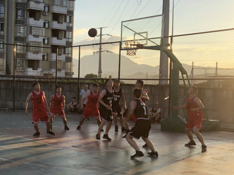 雖然時值酷暑、天氣炎熱,但30多度的高溫卻絲毫未影響隊員的比賽熱情。6:30,伴著落日的余暉,隨著裁判的一聲哨響,比賽正式開始,雙方隊員在籃球場上各顯身手,緊張激烈的球賽高潮迭起,比賽場面精彩紛呈,扣人心弦。雙方隊員高超的傳球技術、默契的團隊精神、熟練的戰(zhàn)術配合和精準的投籃,贏得了在場觀眾的陣陣掌聲。