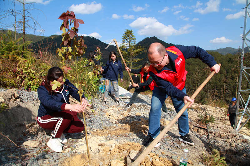 此次活動(dòng)主題為“助力‘雙碳’ 電力先行”,通過支部聯(lián)合共建,扎實(shí)推進(jìn)“黨建+”活動(dòng)。在植樹現(xiàn)場(chǎng),該公司員工拿起鋤頭、扛起樹苗,挖樹坑、栽樹、培土、澆水,大家合力栽下一株株楓香樹苗,踐行國家電網(wǎng)為美麗中國賦能的光榮使命,推動(dòng)節(jié)能減碳,助力“雙碳”。同時(shí),為增強(qiáng)儀式感,該公司還特別制作了“綠色古田 美化家園”愛心植樹牌,參加活動(dòng)的員工各自在牌子上寫上所在黨支部(工會(huì))以及植樹時(shí)間,給自己種的小樹苗掛上“身份牌”并紛紛合照留念。