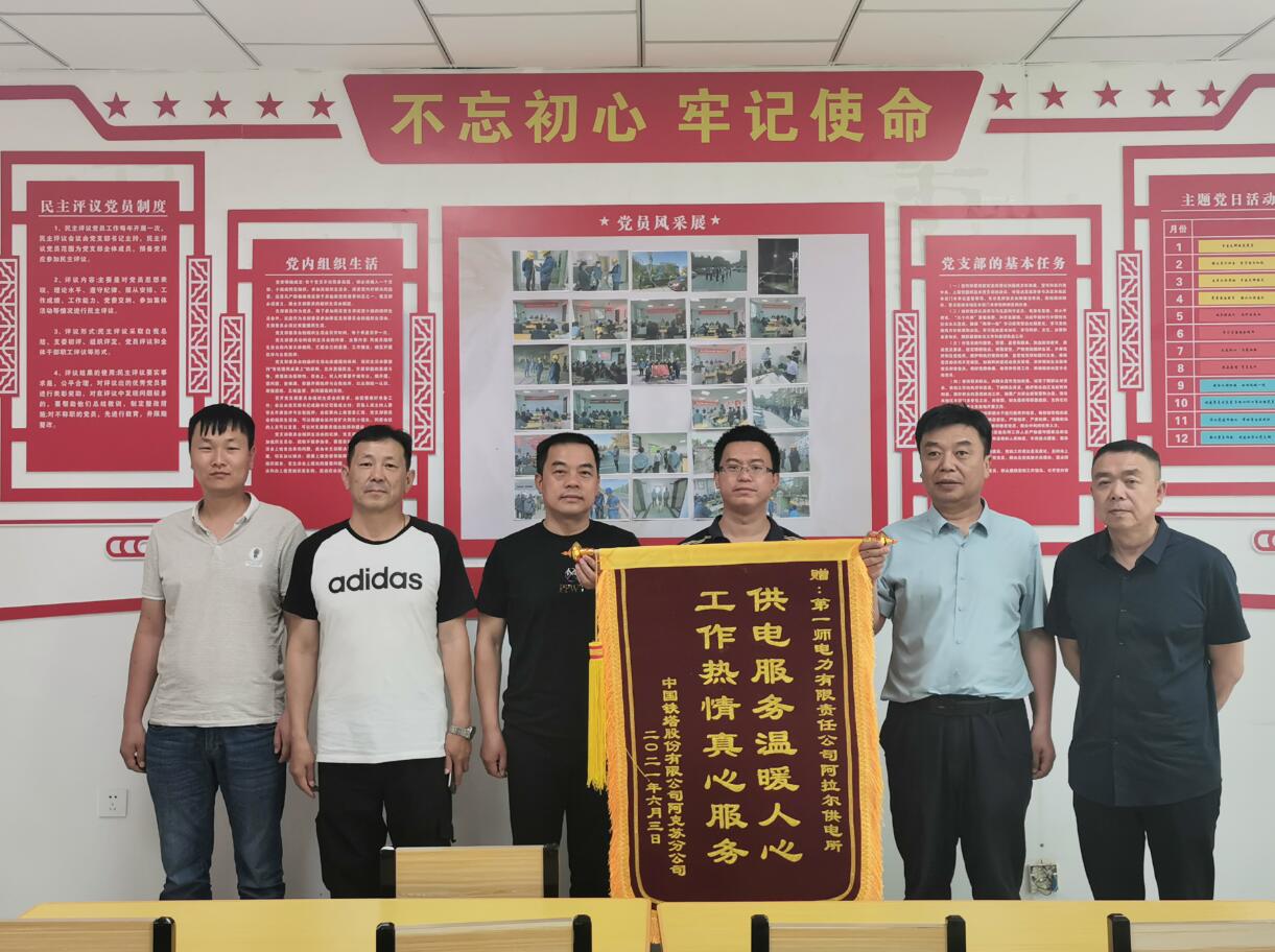 中國鐵塔阿克蘇分公司負(fù)責(zé)人蔣羽將一面寫著“供電服務(wù)溫暖人心·工作熱情真心服務(wù)”的錦旗送到一師電力阿拉爾供電所負(fù)責(zé)人手中,對他們優(yōu)質(zhì)、高效的供電服務(wù)贊不絕口。
