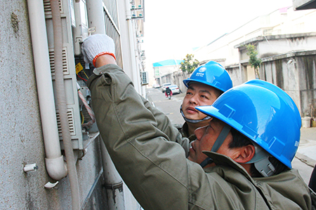 中國電力網(wǎng)訊 1月11日,江蘇連云港東??h供電公司營銷管理人員吳東華、李金在牛山鎮(zhèn)王東村檢查用戶表計用電情況。
