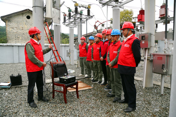 中國(guó)電力網(wǎng)訊 1月18日,在35千伏洞口變電站工作現(xiàn)場(chǎng),國(guó)網(wǎng)樂安縣供電公司營(yíng)銷黨支部組織各供電所營(yíng)銷副所長(zhǎng)對(duì)洞楓線發(fā)電上網(wǎng)計(jì)量裝置進(jìn)行現(xiàn)場(chǎng)校驗(yàn)。這是該公司全面加強(qiáng)黨建引領(lǐng),通過“黨建+”現(xiàn)場(chǎng)培訓(xùn)提升隊(duì)伍素質(zhì)的一個(gè)場(chǎng)景。
