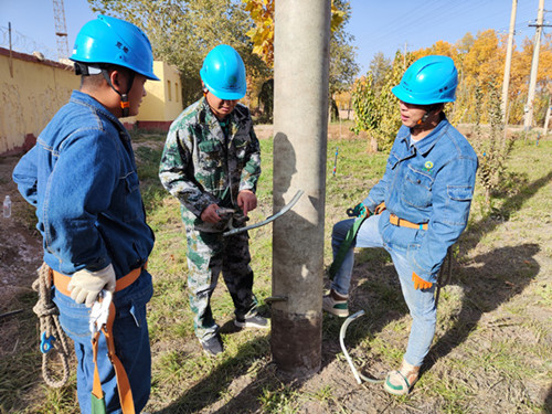 中國電力網(wǎng)訊 11月24日,兵團第一師電力有限責任公司荒地供電所工會組織新入職3名青年員工開展為期一周的登桿實操培訓。