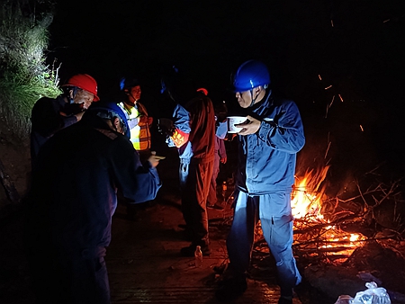 幾天前我到小灣供電所一個偏遠的搶修現場,因為下雨的原因,搶修工作延遲到下午16時多才開始,直到凌晨3點多結束。期間23時左右因大雨而工作暫停,大家才燒了壺水燙了個方便面墊了個底。