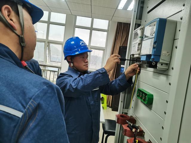 他總結(jié)出裝表接電“七步法”:第一步,安裝就位。將電能表、負(fù)荷管理終端、電流互感器、聯(lián)合接線盒等設(shè)備安裝就位,布置原則是電能表與聯(lián)合接線盒之間的垂直距離為15厘米,互感器之間的水平距離為15厘米。第二步,下料。根據(jù)互感器、聯(lián)合接線盒、電能表、負(fù)荷管理終端之間的距離按照黃、綠、紅、黑的相色對線材下料,并留有一定的裕度。第三步,綁扎。這一過程中嚴(yán)禁出現(xiàn)交叉。捆扎導(dǎo)線時,對應(yīng)的3根黃、綠、紅導(dǎo)線和1根黑導(dǎo)線按照3-4-3的位置排列,即黃、紅兩色在外層,綠、黑兩色在內(nèi)層,黑色靠外。第四步,走向。各個彎折點用扎帶捆扎,對齊后按預(yù)留8-10mm的長度剪齊。第五步,接入接線盒。將線頭按1.5-2mm的長度剝?nèi)ソ^緣層,套上號頭后與接線盒連接,擰緊螺絲。第六步,接互感器。線圈的做法,將導(dǎo)線折彎90度,用尖嘴鉗彎成半圓,再換一下手彎成圓形。線圈以順時鐘鉗入。第七步,按照接線盒到電能表和負(fù)荷管理終端之間的距離依次分色拆線接入。