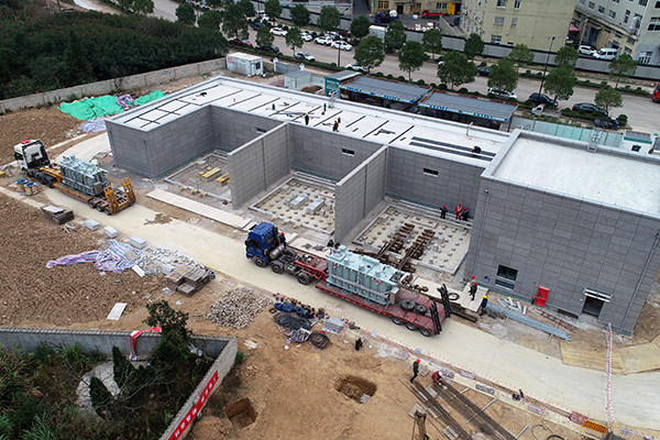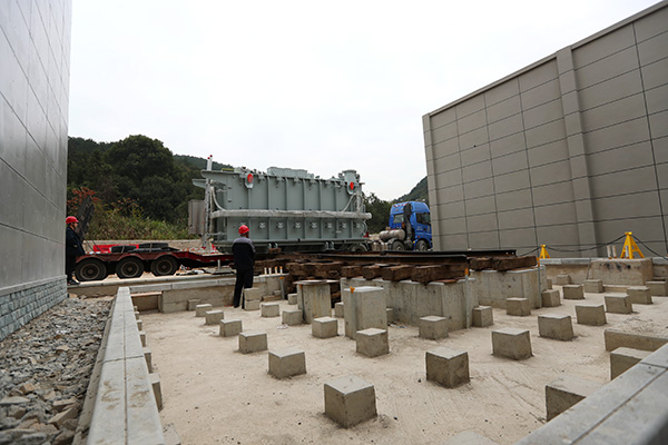 考慮到近期受山東青島疫情影響,國網(wǎng)寧海縣供電公司對來自山東菏澤地區(qū)的運(yùn)輸單位人員提前進(jìn)行了移動軌跡審查備案,并在工地現(xiàn)場開展測溫消毒,為冬季疫情防控做足了充分準(zhǔn)備。在各參建單位的周密部署下,經(jīng)過兩天復(fù)雜的步驟和精細(xì)的操作,兩臺主變順利卸裝就位,主變就位精準(zhǔn)、成品保護(hù)及現(xiàn)場環(huán)境滿足相關(guān)規(guī)范要求。