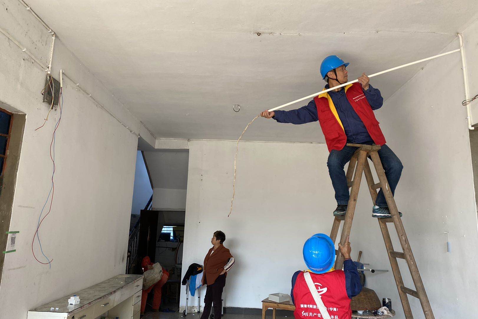 中國電力網(wǎng)訊 “把這個插座往下移,這樣方便我家老倌用電,還有樓上燈壞了,也幫忙換下......”10月23日,看到國網(wǎng)寧??h供電公司電建支部黨員服務隊來到家里,殘疾老人王圣澤的老伴顯得格外激動。因為家里拉成“蜘蛛網(wǎng)”一樣的電線這下能得到徹底整理了,而且還可以根據(jù)殘疾人的需求改造插座和開關的位置。
