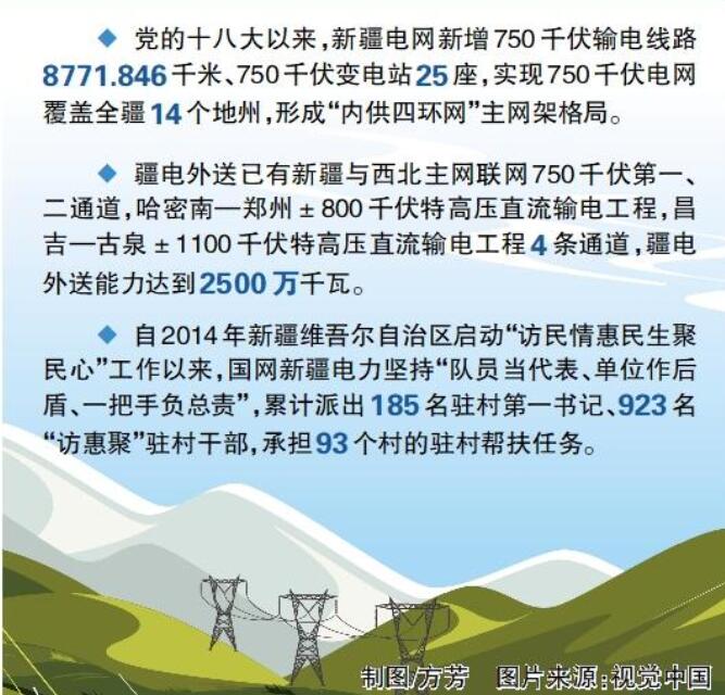 伴隨著一條條銀線跨越千年的絲綢古道,新疆正憑借豐富的資源、重要的地理位置迎來(lái)大發(fā)展。國(guó)網(wǎng)新疆電力充分發(fā)揮自治區(qū)資源優(yōu)勢(shì),將源源不斷的電力轉(zhuǎn)化為促進(jìn)新疆經(jīng)濟(jì)社會(huì)發(fā)展的強(qiáng)大動(dòng)力。今天的新疆,發(fā)展脈搏強(qiáng)勁跳動(dòng),群眾生活幸福美好,天山南北處處呈現(xiàn)喜人變化。(余艷春 范增琴)
