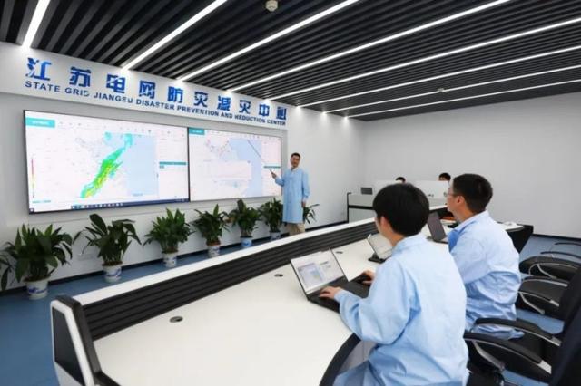 江蘇電網(wǎng)防災(zāi)減災(zāi)中心技術(shù)人員對氣象預(yù)警技術(shù)進行研討。