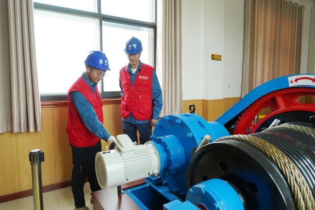國家電網(wǎng)山東電力彩虹共產(chǎn)黨員服務(wù)隊隊員檢查許家崖水庫泄洪機組運行情況。