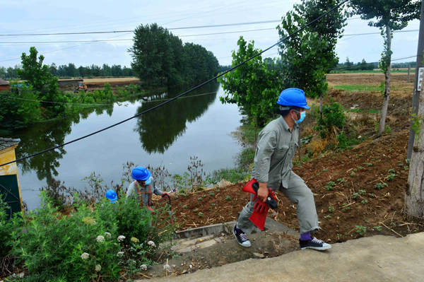 “陳書(shū)記,昨天下雨無(wú)法施工,我們現(xiàn)在在陳廟一級(jí)站,準(zhǔn)備開(kāi)展專(zhuān)變表箱表計(jì)和互感器安裝工作,請(qǐng)?jiān)S可斷開(kāi)專(zhuān)變跌落保險(xiǎn)。”6月10日上午,國(guó)網(wǎng)湖北老河口市供電公司薛集供電所營(yíng)銷(xiāo)班長(zhǎng)李永久和同事站在薛集鎮(zhèn)陳廟村一級(jí)提灌泵站旁,撥通了陳廟村書(shū)記陳豐功的電話(huà)。
