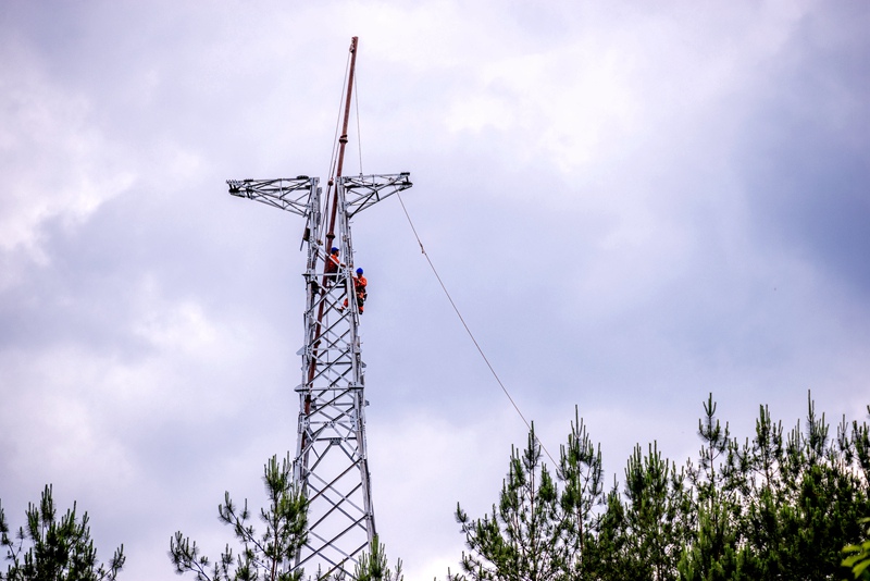 中國電力網(wǎng)訊 6月10日,室外氣溫高達(dá)28攝氏度,在四川省巴中市通江縣陳河鎮(zhèn)下江口村10社,國網(wǎng)通江縣供電公司施工人員有序開展涪陽變電站一河壩1井線路15號(hào)鐵塔組立工作。據(jù)了解,國網(wǎng)四川省巴中市通江縣供電公司積極服務(wù)地方經(jīng)濟(jì)發(fā)展,開辟供電服務(wù)綠色通道,從報(bào)裝申請(qǐng)、供電方案確定等方面提供優(yōu)質(zhì)高效的“一條龍”辦電服務(wù),為重點(diǎn)項(xiàng)目建設(shè)提供用電保障。程聰攝
