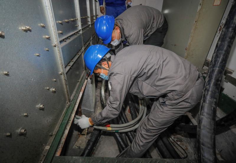 “門(mén)診明天6時(shí)開(kāi)始工作,我們必須在凌晨4時(shí)前通電,保證門(mén)診部明天正常運(yùn)轉(zhuǎn)!” 工程負(fù)責(zé)人張軍現(xiàn)場(chǎng)號(hào)令。30日晚,20余名電力員工在李惠利醫(yī)院10千伏環(huán)網(wǎng)站周?chē)鸢踩┕し雷o(hù)欄和警界線,一場(chǎng)10千伏新電力用電設(shè)備投運(yùn)施工在星夜展開(kāi)。老配電房電纜溝窄小,2名員工只能側(cè)著身把舊導(dǎo)線用力拉出來(lái),再把新電纜放進(jìn)去。新配電箱安裝時(shí),供電員工只能跪著安裝碗口粗的銅電纜,施工難度非常大。而供電員工心理明白,這是一場(chǎng)與時(shí)間賽跑、為生命加速的工程。