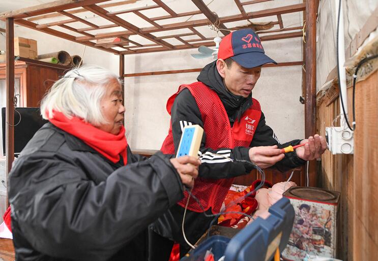 今年80歲高齡的徐桂琴老人患有肢體三級殘疾,獨自守著兩間低矮的小房間過日子。2020年,國網(wǎng)慈溪市供電公司的黨員志愿者在走訪中了解到她的情況后,將其列為“千戶萬燈”改造對象,對其家中的室內(nèi)照明線路進行了“免費換新”。考慮到老人一人獨居,志愿者還時常上門為老人查看用電情況,詢問她的生活需求。近日,受“霸王級”寒潮影響,浙江慈溪持續(xù)低溫天氣。該公司的志愿者為了讓老人溫暖度冬,特意購置了大衣、圍巾、手套等保暖用品和一本半米高的掛歷,打算作為新年禮物送給老人。
