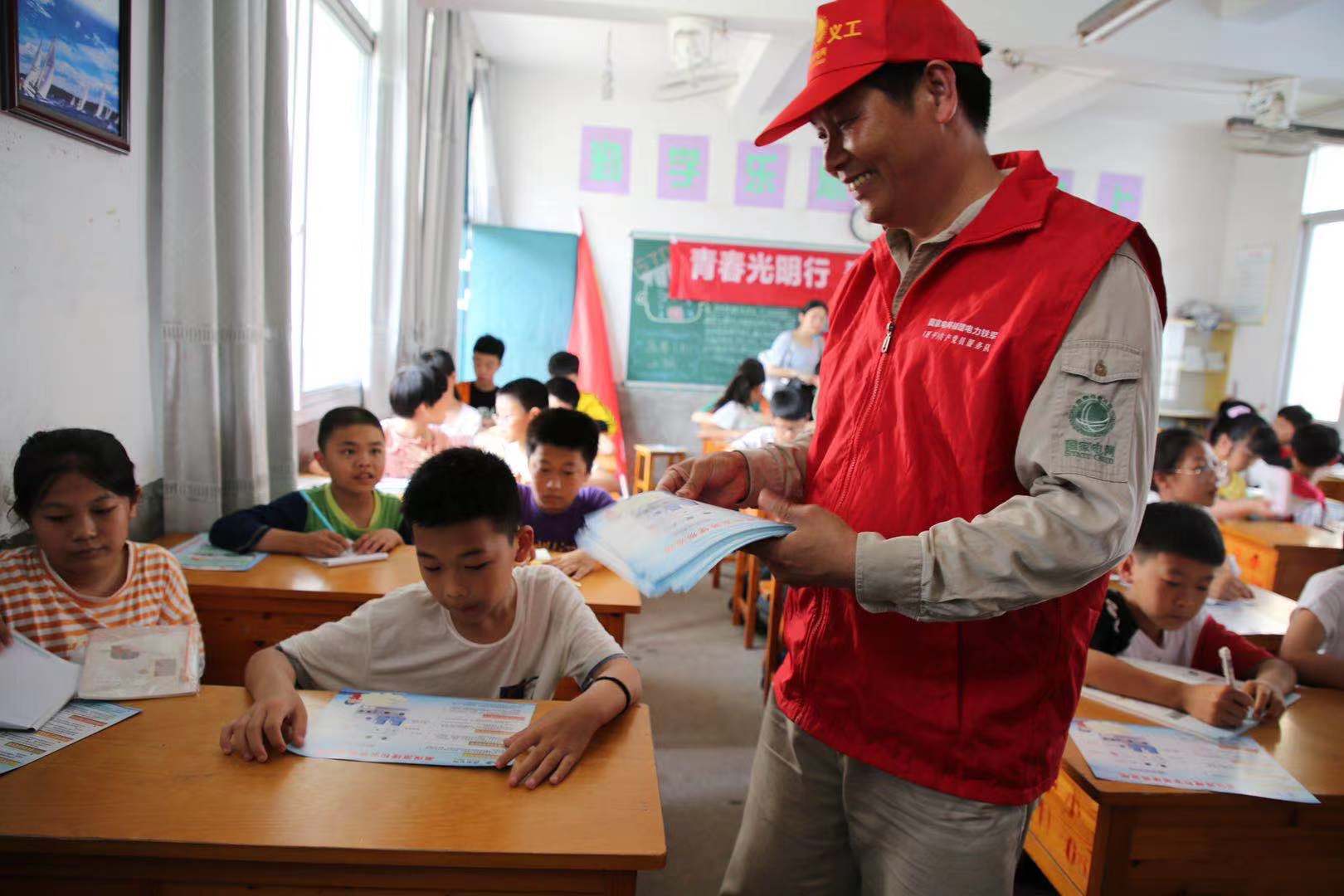 課堂上,服務(wù)隊(duì)隊(duì)員們充分利用PPT、安全用電宣傳漫畫書、電力安全手冊等資料,通過情景再現(xiàn)、現(xiàn)場提問等寓教于樂的方式,生動形象地為孩子們講解了電的分類、電的危害、雷電的防范、生活中的安全用電等方面的知識,引導(dǎo)孩子們不能在電力線路附近釣魚、放風(fēng)箏;不能攀爬變壓器、電桿;雷雨天氣不能在樹下避雨,不要在室外打電話等。