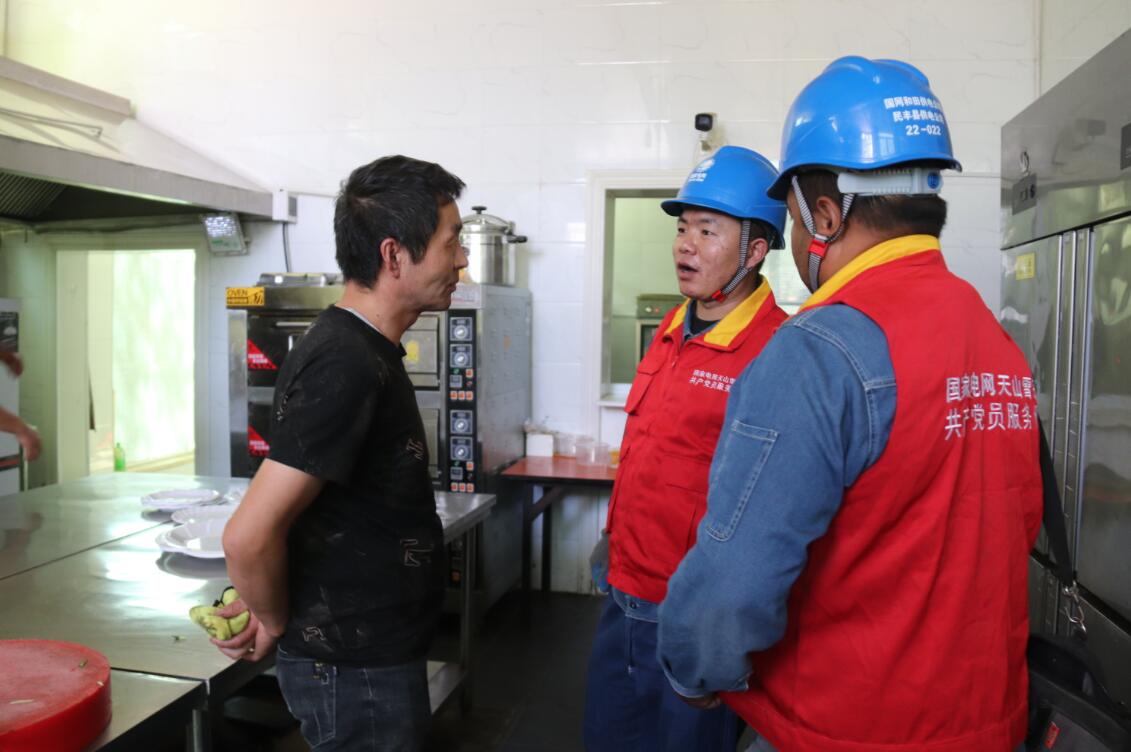 7月14日,新疆和田民豐供電公司黨員服務(wù)隊(duì)隊(duì)員滿繼武、伊德日斯·買提托合提在民豐縣尼亞灣鄉(xiāng)村人農(nóng)家樂了解客戶用電需求,普及電力安全知識(shí)。