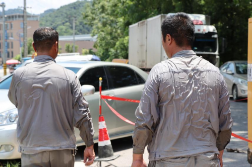 經(jīng)過(guò)持續(xù)一小時(shí)的高溫作業(yè),接線(xiàn)任務(wù)順利完成。兩名作業(yè)人員熱得直喘氣,被曬得通紅的臉上,汗水止不住地流,厚重的絕緣披肩下,工作服被汗水浸透,脫下的絕緣手套里更是倒出了一打汗水。略顯吃力地脫下黏在身上的工作服后,工作班成員葉曉聰長(zhǎng)長(zhǎng)地舒了一口氣:“我們每天做一個(gè)任務(wù)就得換一套衣服,任務(wù)多的話(huà)一天要換五六套衣服,沒(méi)辦法,衣服都被汗水濕透了。”正說(shuō)著,他和工作班成員徐華一起用力擰著脫下來(lái)的衣服。“跟洗衣服似的,把衣服擰干晾曬繼續(xù)穿!”一旁的徐華打著赤膊,不好意思地笑了。