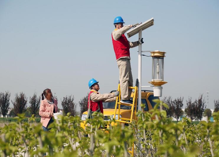 供電員工在桑葚種植園檢查光伏設(shè)備。 孫永興 攝