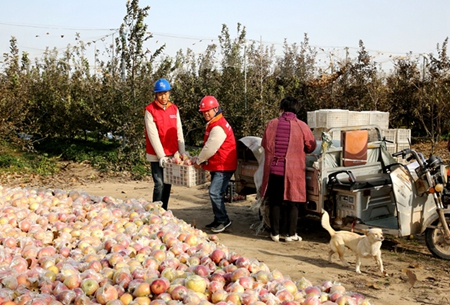11月26日,國網(wǎng)江蘇電力睢寧縣供電公司王集供電所服務(wù)隊員來到蘇塘果園幫助果農(nóng)采摘蘋果,并向他們介紹冬季安全用電和電力保護知識,深受果農(nóng)好評。