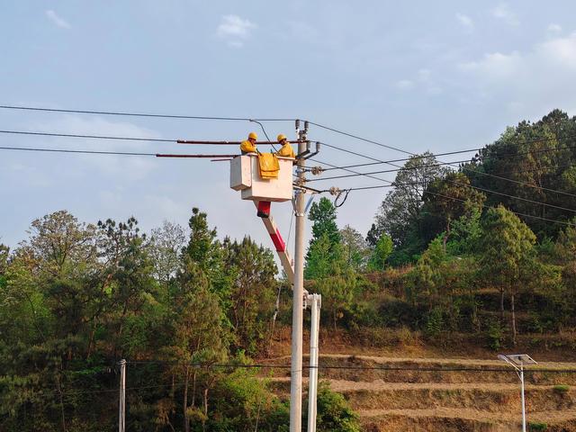 南方電網(wǎng)興仁供電局工作人員對鯉魚壩村低電壓農(nóng)網(wǎng)改造線路進(jìn)行帶電作業(yè)安裝現(xiàn)場。