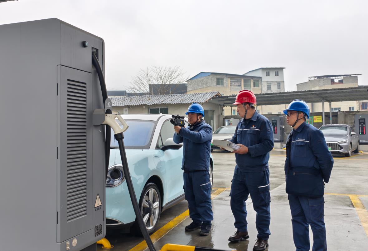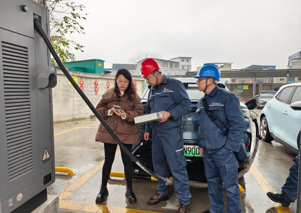 1月28日,也是大年除夕,德江迎來了出行高峰。南方電網(wǎng)貴州銅仁德江供電局城區(qū)供電所副所長陳彥和同事張權(quán)、張連輝來到德江縣晶時(shí)代充電站,對正在運(yùn)行使用的6個(gè)充電樁進(jìn)行全面“體檢”,確保設(shè)備正常運(yùn)轉(zhuǎn),為新能源汽車綠色出行提供充足可靠電力保障。