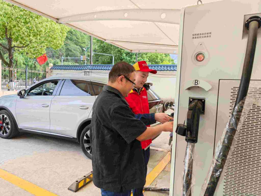 釣魚觀停車場新能源汽車充電站配備了8個充電終端,其中直流充電終端6個,交流充電終端2個,每個充電車位都配有雨棚。本次檢查中,工作人員重點對充電樁的充電槍是否破損變形、指示燈狀態(tài)及界面顯示是否清晰等進(jìn)行全方位“體檢”。同時,仔細(xì)查看充電樁運行數(shù)據(jù),檢測充電效率,確保設(shè)備穩(wěn)定運行,及時消除各類潛在安全隱患。針對檢查中發(fā)現(xiàn)的問題,服務(wù)隊工作人員現(xiàn)場進(jìn)行記錄并制定整改措施,能當(dāng)場解決的立即處理,無法當(dāng)場解決的則安排專人跟蹤落實,確保所有充電樁設(shè)備在“五一”假期期間保持良好運行狀態(tài)。
