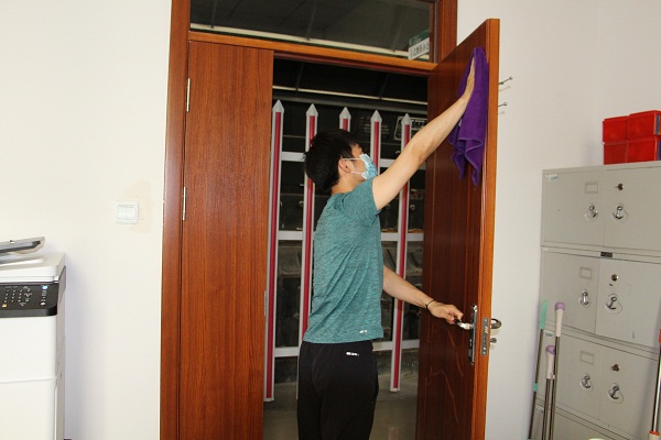 中國電力網(wǎng)訊 “大家把門和柜子上面都擦一擦、消消毒,讓病毒無處可藏”,5月19日,新疆生產(chǎn)建設兵團第一師電力有限責任公司中心調(diào)度所開展衛(wèi)生大掃除活動,確保疫情防控無死角。