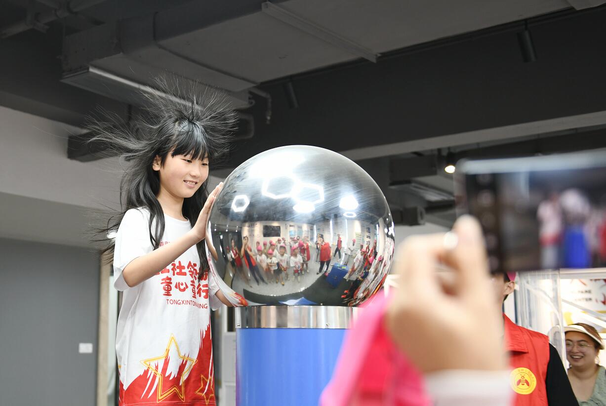 “摸一個(gè)球居然能讓頭發(fā)立起來,太神奇了。”同學(xué)們懷著既忐忑又好奇的心情,紛紛進(jìn)行了靜電球體驗(yàn),連連稱奇。一個(gè)個(gè)互動(dòng)游戲,讓同學(xué)們爭相體驗(yàn),樂此不疲,他們摩擦起電讓頭發(fā)起飛的樂趣,感受用自己的力量產(chǎn)生電的魅力,也讓他們對(duì)電有了一個(gè)更深入的認(rèn)識(shí)。隨后,志愿者還通過提前設(shè)置的簡單電力知識(shí)互動(dòng)問答,在講解并分析中,讓小朋友們進(jìn)一步了解用電安全,從而養(yǎng)成節(jié)約用電的好習(xí)慣。