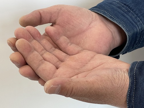 記不清在多少個凜冬和雪天進行線路應(yīng)急搶修工作,特別是長時間在桿塔上作業(yè),讓張旭棟患上了頸椎病和腰腿關(guān)節(jié)炎。此外,張旭棟也沒有過多地“注意保護他的雙手”。在戶外溫度接近零下30攝氏度的冬季工作,線手套、絕緣手套根本無法抵御得了嚴(yán)寒。但張旭棟好像是有著使不完的勁兒,即便雙手被凍得顫抖發(fā)麻,他也沒停下,只想著能盡快完成搶修,恢復(fù)送電。有時在給設(shè)備部件的螺栓進行預(yù)緊時,不免磕碰在架構(gòu)尖銳的棱角上,工作結(jié)束后摘下手套,張旭棟的手通常是青一塊紫一塊,甚至隔著線手套被劃傷流血后都已結(jié)痂……