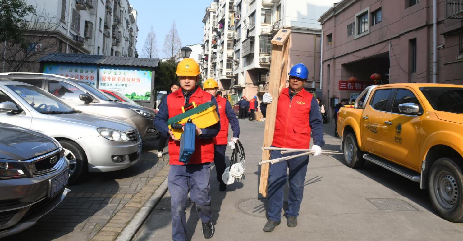 “大家按組領取材料、工器具,上下樓梯一定要注意安全……”當天,志愿者們三人一組,穿梭在小區(qū)各個樓道間,布線固定線卡、安裝節(jié)能感應燈、屋頂光伏板安裝……在不影響居民出行的情況下,24名志愿者緊鑼密鼓地開展光伏樓道燈改造,履行與社區(qū)居民“點亮黑樓道”的約定,現(xiàn)場一片熱鬧景象。