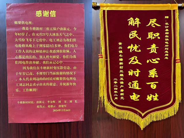 “每隔一段時(shí)間,你們就來(lái)幫忙檢查我們村高齡及獨(dú)居老人家里的線路,謝謝你們,真是辛苦了。”3月1日,斗塘新村83歲的村民唐新元老人將一面錦旗和一封感謝信送到了?梨供電所,以此表達(dá)對(duì)“電雷鋒”劉志的感激之情。