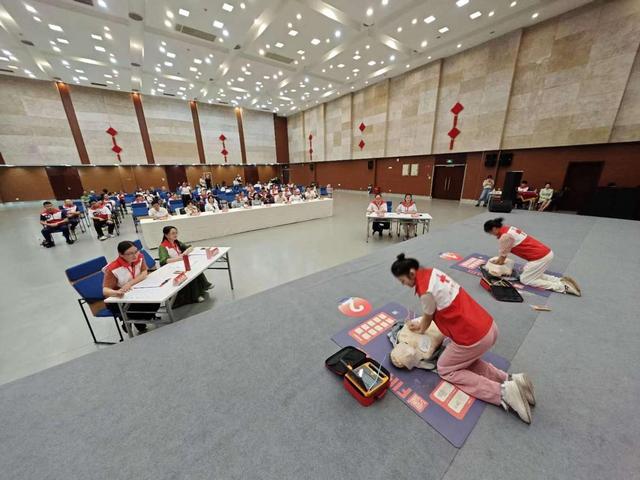 比賽現(xiàn)場,參賽選手個個認真專注。在做好自我防護和評估現(xiàn)場環(huán)境后,當參賽者目擊眼前“患者”狀況,立即作出判斷并著手進行醫(yī)治。只見她跪立在“患者”一側(cè),兩膝分開,右手掌根緊貼“患者”胸部中點,雙手交叉重疊,右手五指翹起,雙臂伸直重復(fù)進行著胸外按壓動作,并不斷觀察“患者”反應(yīng)。在按壓結(jié)束后,將其頭部偏向一側(cè),檢查口腔是否有分泌物,方便及時清理,整套動作如行云流水。