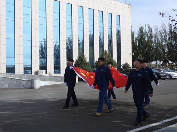 上午8時30分,升旗儀式正式開始。該公司各團(tuán)支部青年團(tuán)員組成的護(hù)旗手隊(duì)伍邁著堅(jiān)定步伐護(hù)衛(wèi)國旗走向升旗臺。伴隨著莊嚴(yán)激昂的《義勇軍進(jìn)行曲》,鮮艷的五星紅旗冉冉升起,廣大青年職工莊嚴(yán)肅立,面向國旗行注目禮的同時,懷著無比崇敬的心情高唱國歌,向偉大的祖國表達(dá)崇高敬意和深情祝福。