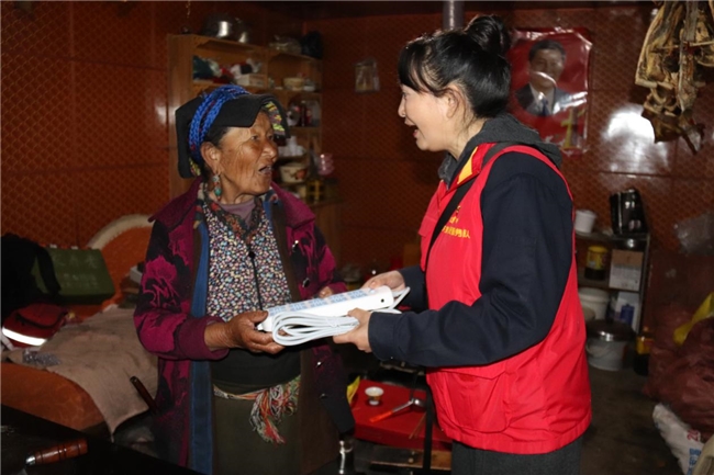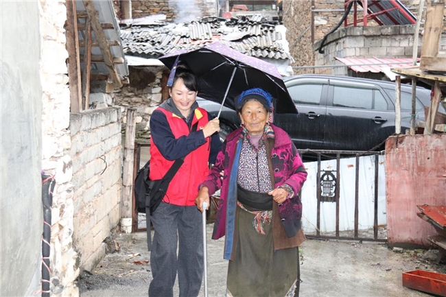 秋雨綿綿,細(xì)密的雨絲如絲如縷,給川西北高原的馬爾康帶來絲絲涼意,讓人深感秋意漸濃。在鄉(xiāng)村農(nóng)舍里,一群身著“紅馬甲”的共產(chǎn)黨員服務(wù)隊(duì)隊(duì)員正與一位長期獨(dú)居的82歲高齡老人澤郎哈么親切交談,隊(duì)員們詳細(xì)詢問了老人的身體狀況、飲食起居、日?;顒拥确矫媲闆r,為老人送上節(jié)日慰問品,并叮囑老人注意身體,要安全用電,有問題撥打“便民服務(wù)連心卡”服務(wù)電話,隊(duì)員們會隨叫隨到,及時(shí)解決老人用電、生活方面等問題。