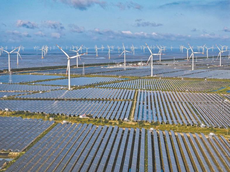 一年四季的海風(fēng),為江蘇省如東縣“吹”來用之不竭的綠色能源。從2002年起,如東縣立足沿海風(fēng)力資源富集區(qū)的優(yōu)勢,著力推進風(fēng)電資源開發(fā)。如今,在如東縣86千米的海岸線上,矗立著上千架風(fēng)電機組。與此同時,如東縣還擁有104萬畝灘涂,太陽能資源富集。今年1~9月,當(dāng)?shù)匦履茉窗l(fā)電并網(wǎng)電量超過114億千瓦時,已超過如東地區(qū)2023年全社會用電量。
