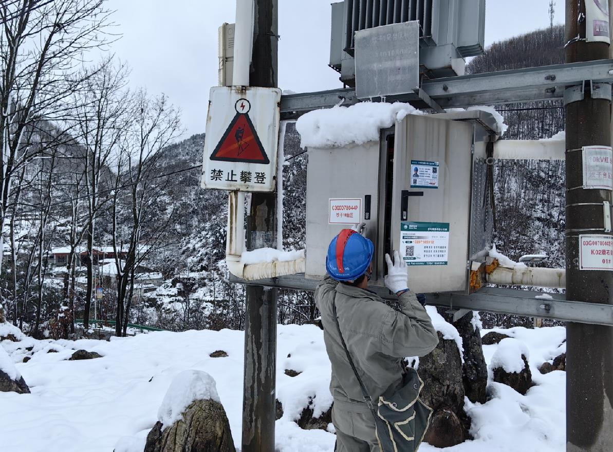 國(guó)網(wǎng)鄖西縣供電公司員工巡檢10千伏紅巖線(xiàn)坎子1#臺(tái)區(qū)電力設(shè)備。